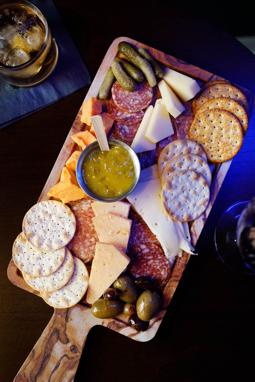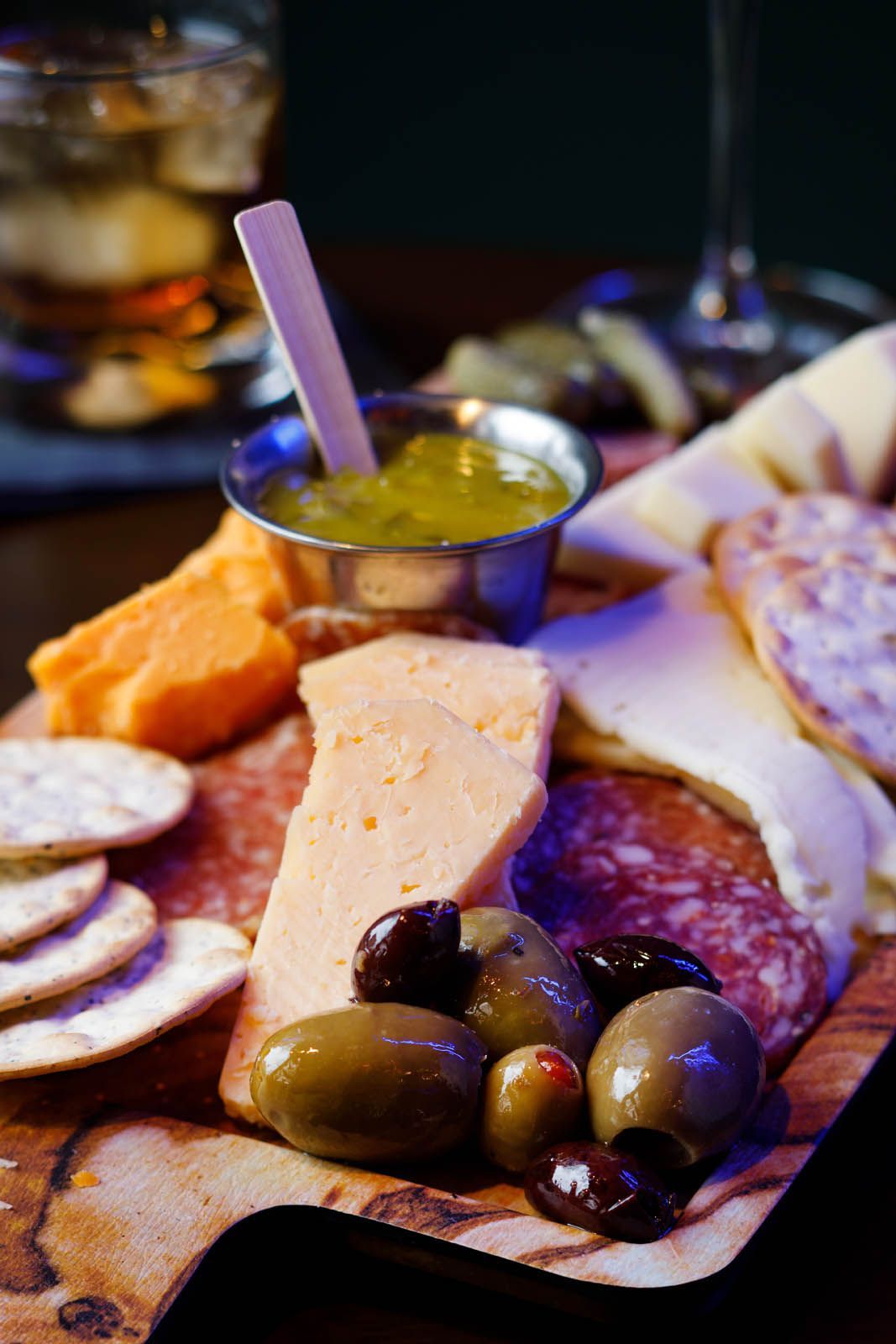 A curated selection of meats, cheeses, olives, artisan crackers, and delectable spreads.