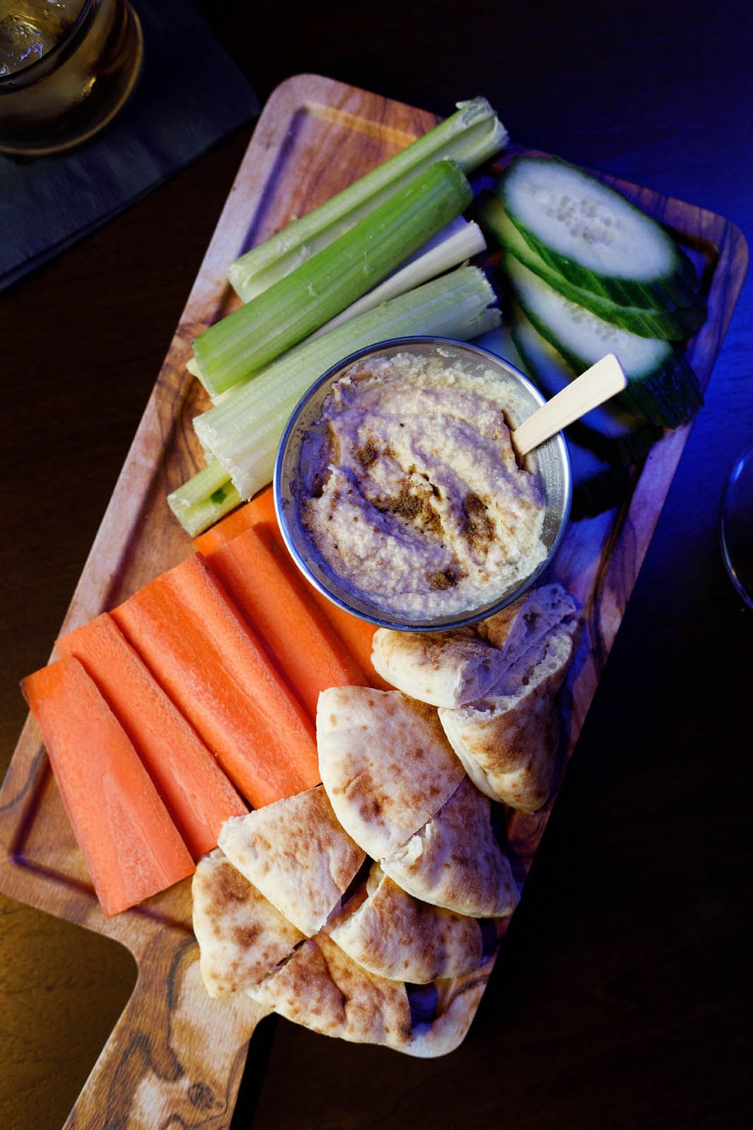 A hand selected hummus paired with locally made pita and fresh vegetables.