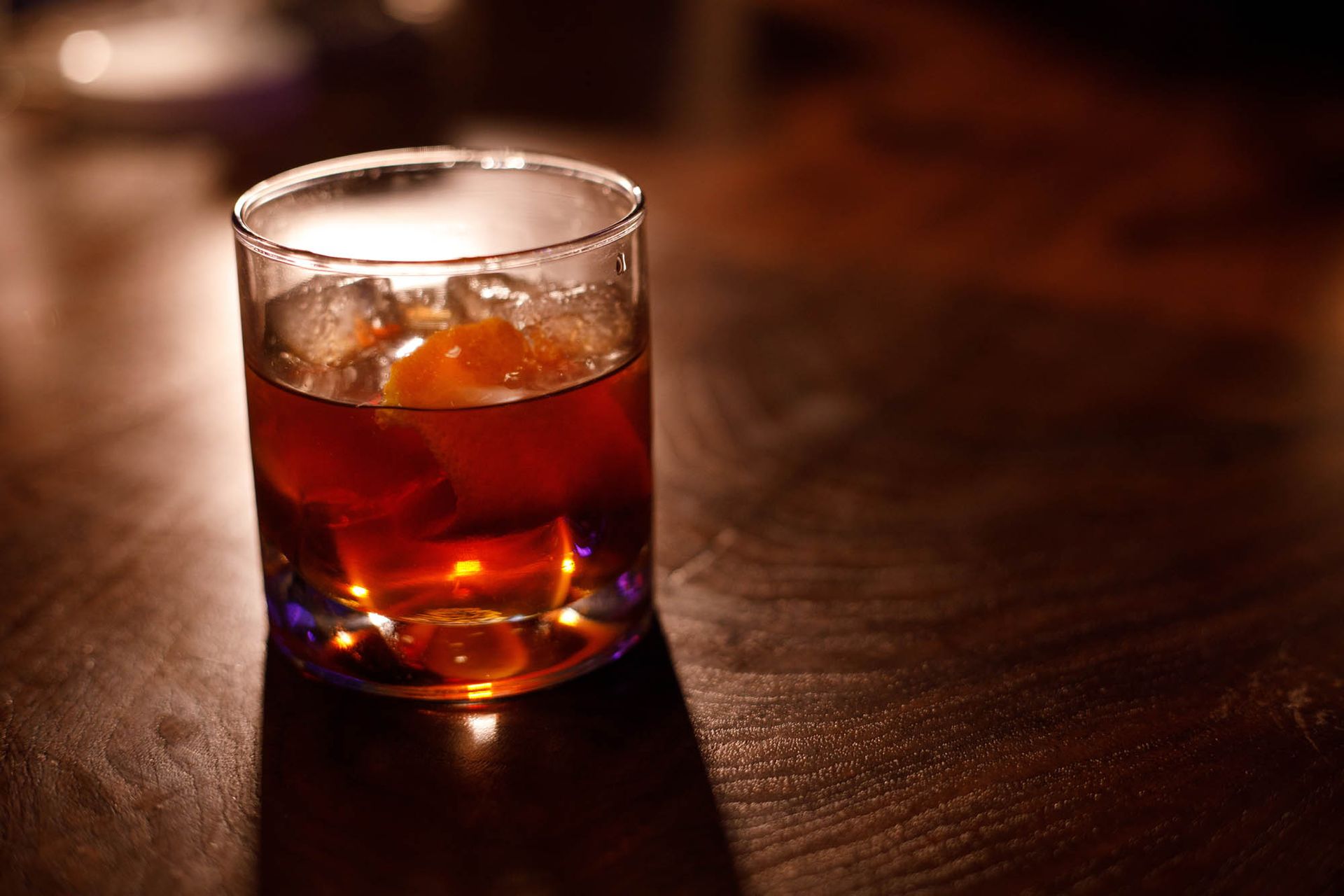 Bulleit Rye, Amaro Montenegro, Dissaranno, Black Walnut Bitters, Orange Twist