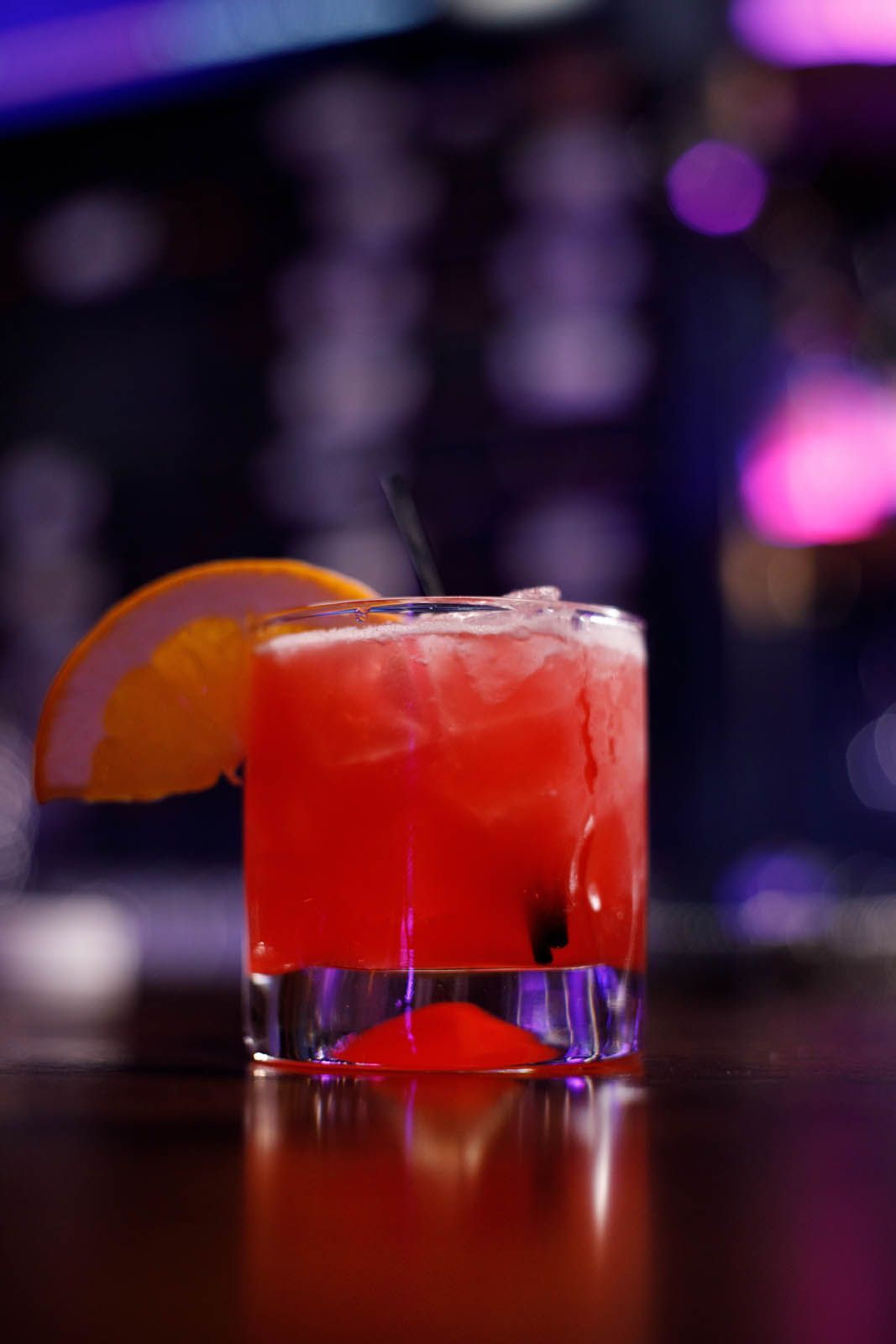 Bulleit Bourbon, Lemon Juice, Grenadine, Simple Syrup, Hint of Absinthe, Lemon Wedge